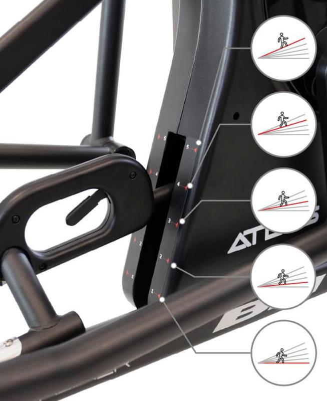 BH Fitness Atlas -elliptinen kuntosali on suunniteltu kaikille, jotka etsivät täydellistä, luonnollista ja tehokasta harjoittelua. 51 cm:n askelpituuden, 5 manuaalisesti säädettävän kaltevuuden ja Bluetooth FTMS -yhteyden ansiosta voit parantaa harjoitustuloksiasi jokaisella harjoituskerralla. Kallistuksen säädettävyyden ansiosta voit lisätä harjoituksen intensiteettiä, aktivoida uusia lihasryhmiä ja simuloida ylämäkiharjoittelua polttaaksesi enemmän kaloreita ja saavuttaaksesi vielä enemmän.