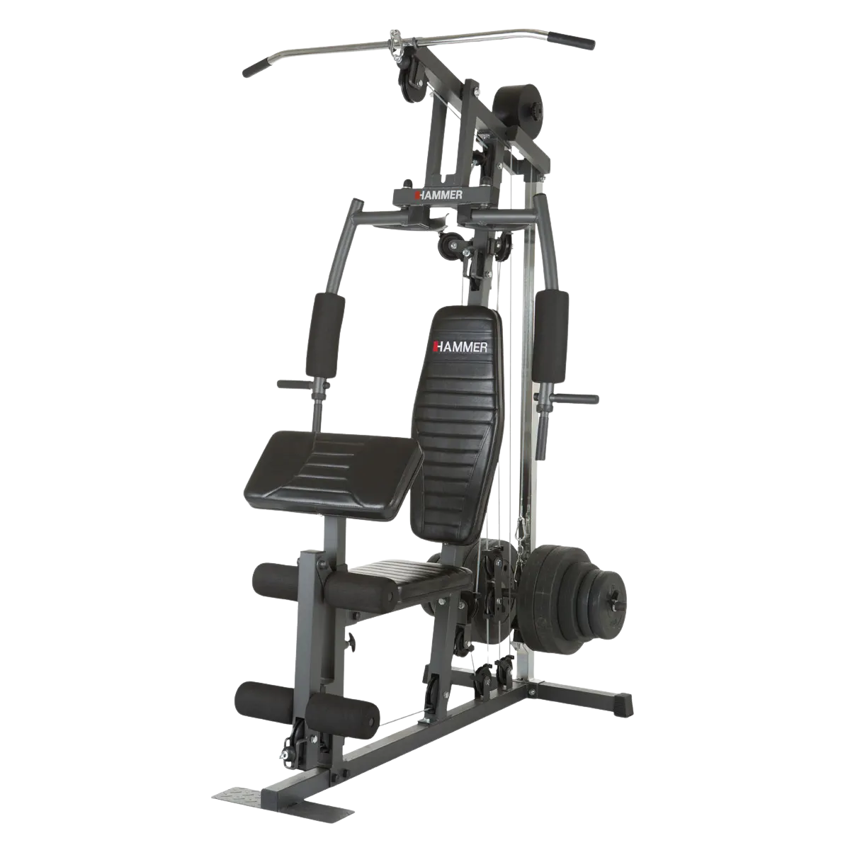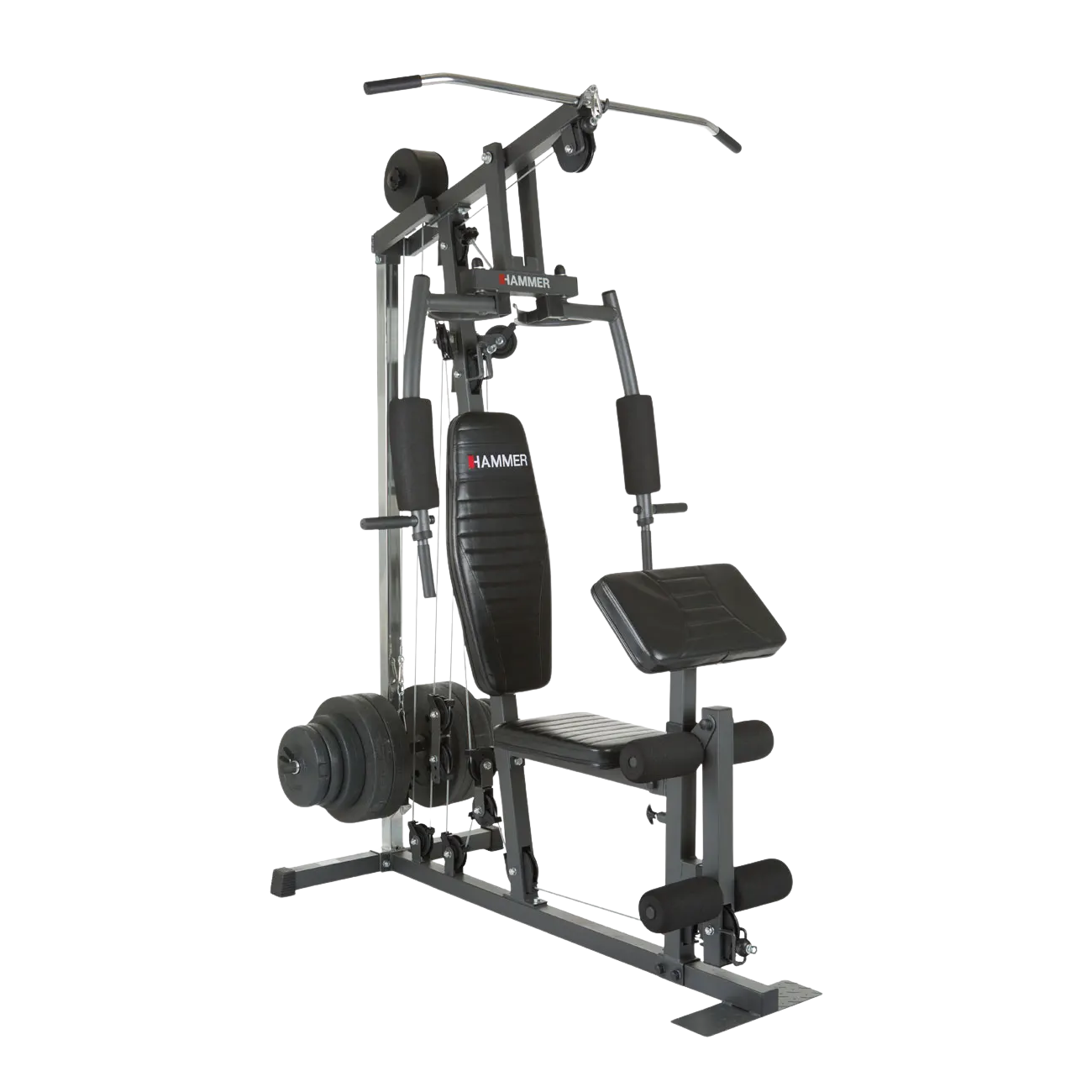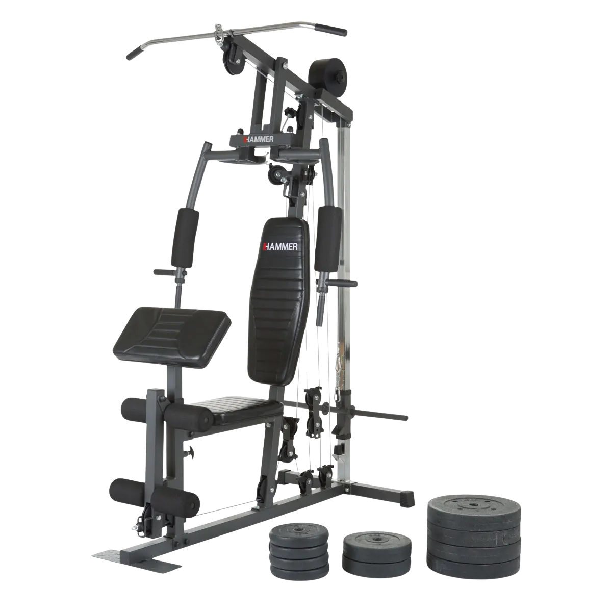HAMMER California XP on todellinen voimanpesä ja ihanteellinen valinta kunnianhimoiseen kotivoimaharjoitteluun. Sarja sisältää 60 kg:n painolohkon, jossa on innovatiivinen kaksoismekanismi, jonka avulla voit saavuttaa jopa 120 kg:n harjoituskuorman. Monipuolisten harjoitusten – kuten perhospainalluksen, rintapainalluksen, deadliftin ja jalkakyykkyjen – ansiosta kaikkia lihasryhmiä voidaan treenata intensiivisesti.